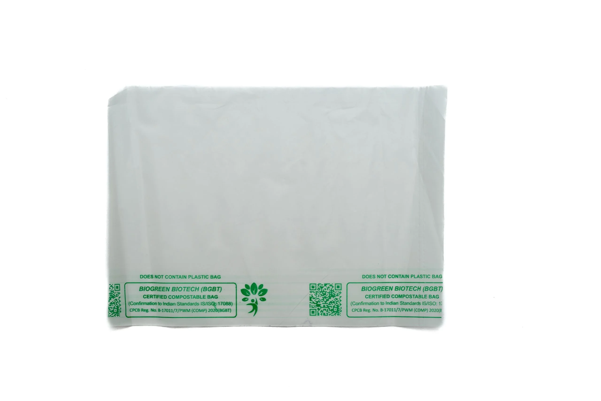 These bags are completely compostable made from sustainable material Corn starch. These bags are specifically made to serve hot. These compostable bags are meant to break down naturally within 6-8 months and become manure again.